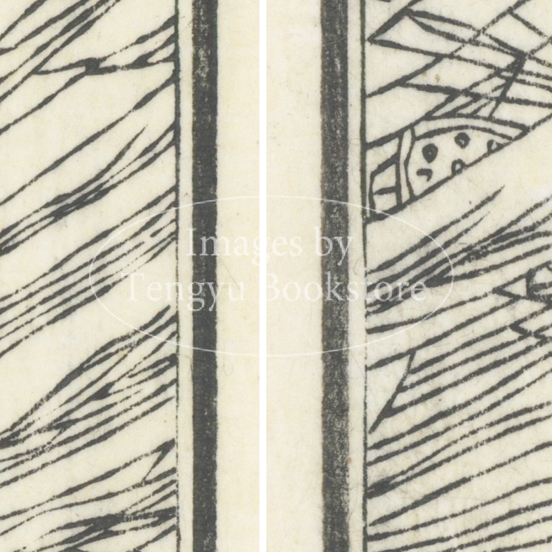 本来は2枚に分けて描かれた作品であるため、色味や図案の整合に若干の不統一があることをご了承ください。