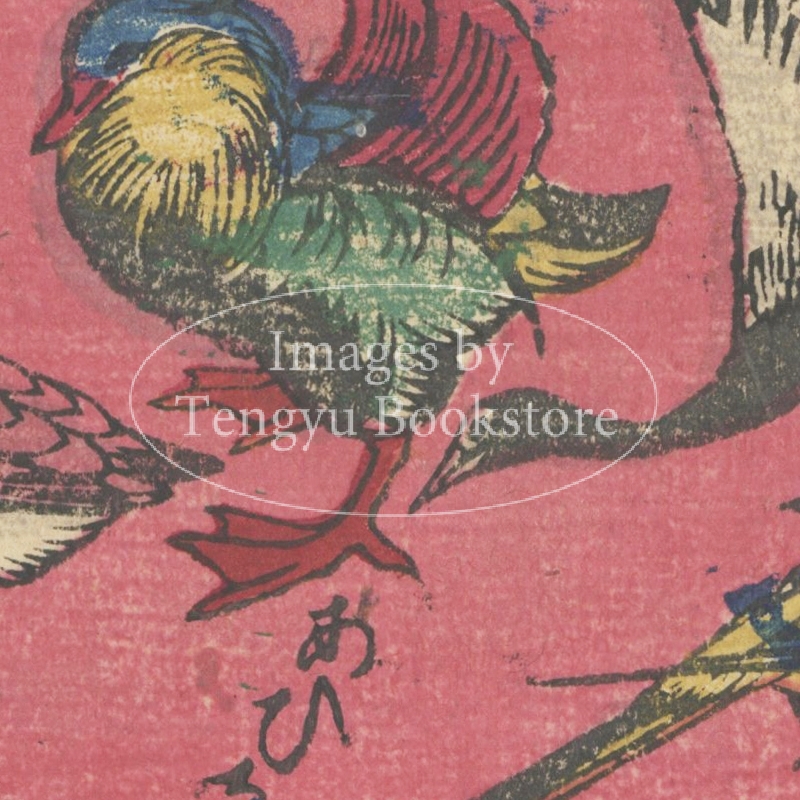幕末から明治にかけての浮世絵師 歌川芳丸(二代目:1844-1907)による、鳥をたくさん描いたおもちゃ絵。「おもちゃ絵」とは遊びや軽い手習いのために使われた子供向けの浮世絵のこと。