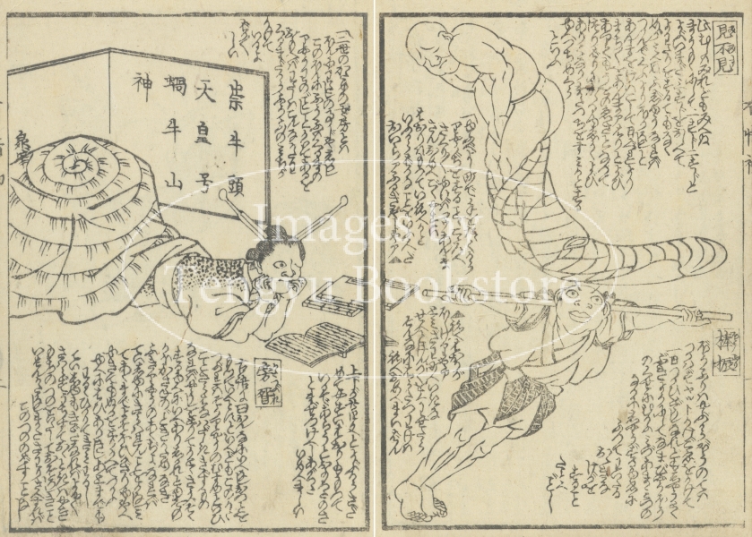 幕末・明治期の戯作者 瓢々亭泉成の滑稽本「有情雑話」からの一枚。本書は、様々な虫・鳥・動物を人間に見立て、面白おかしく紹介した擬人物語。