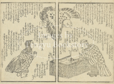 幕末・明治期の戯作者 瓢々亭泉成の滑稽本「有情雑話」からの一枚。本書は、様々な虫・鳥・動物を人間に見立て、面白おかしく紹介した擬人物語。