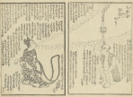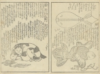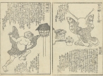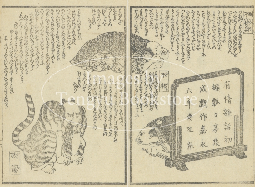 幕末・明治期の戯作者 瓢々亭泉成の滑稽本「有情雑話」からの一枚。本書は、様々な虫・鳥・動物を人間に見立て、面白おかしく紹介した擬人物語。