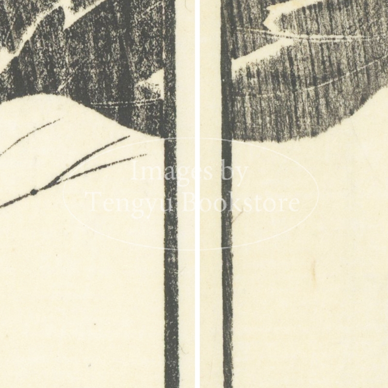 本来は2枚に分けて描かれた作品であるため、色味や図案の整合に若干の不統一があることをご了承ください。