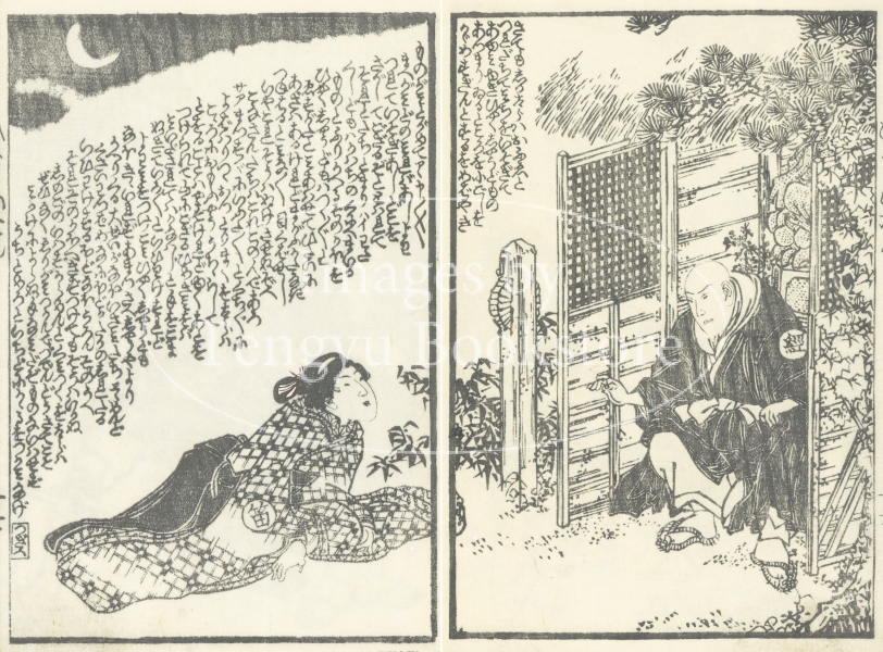 ※本作は見開きページの挿絵を1つの画像にまとめたものです。 本来は2枚に分けて描かれた作品であるため、色味や図案の整合に若干の不統一があることをご了承ください。