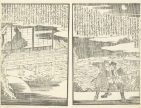 江戸時代後期の浮世絵師・戯作者 歌川貞秀(1807-1878)による草双紙「雲雀山蓮糸織(ひばりやまはちすのいとおり)」の1ページ。奈良の当麻寺に伝わる「当麻曼荼羅」を一晩で織ったとされる中将姫伝説を題材にしたもの。