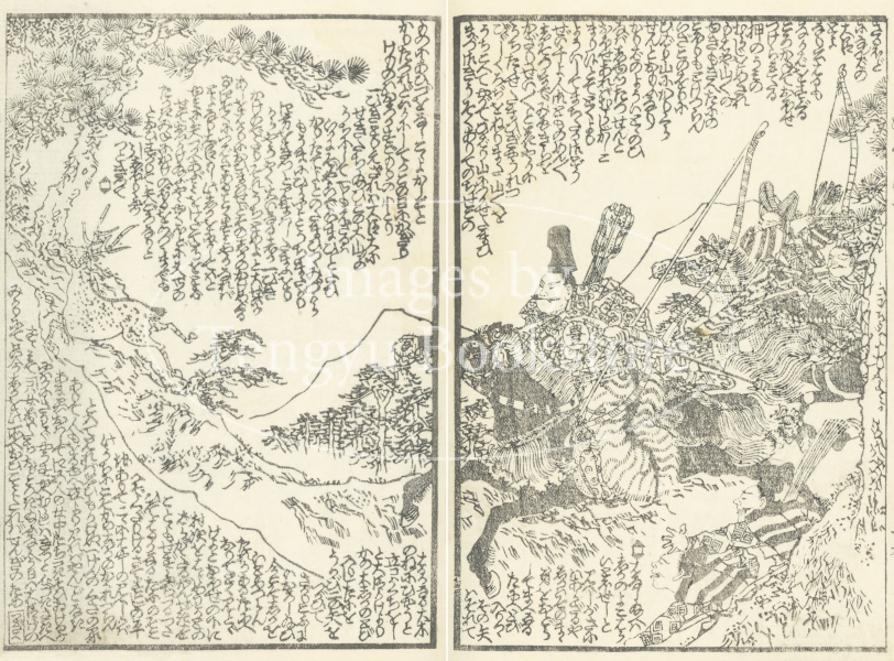 ※本作は見開きページの挿絵を1つの画像にまとめたものです。 本来は2枚に分けて描かれた作品であるため、色味や図案の整合に若干の不統一があることをご了承ください。