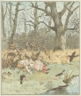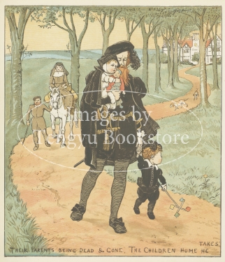 19世紀イギリスを代表する絵本作家の一人、ランドルフ・コルデコット(1846-1886)の絵本「森の中の子供たち」の挿絵。