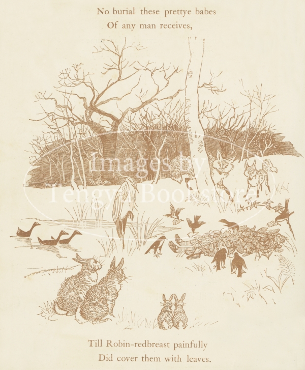 19世紀イギリスを代表する絵本作家の一人、ランドルフ・コルデコット(1846-1886)の絵本「森の中の子供たち」の挿絵。