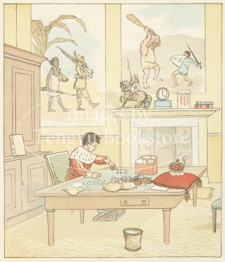19世紀イギリスを代表する絵本作家の一人、ランドルフ・コルデコット(1846-1886)の絵本「6ペンスの歌を歌おう」の挿絵。