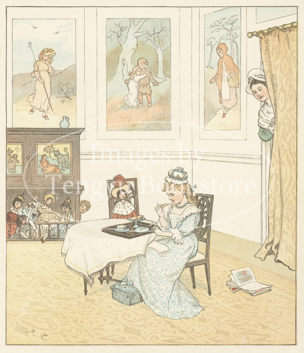 19世紀イギリスを代表する絵本作家の一人、ランドルフ・コルデコット(1846-1886)の絵本「6ペンスの歌を歌おう」の挿絵。