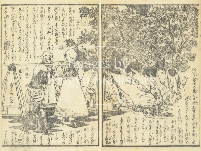 本来は2枚に分けて描かれた作品であるため、色味や図案の整合に若干の不統一があることをご了承ください。