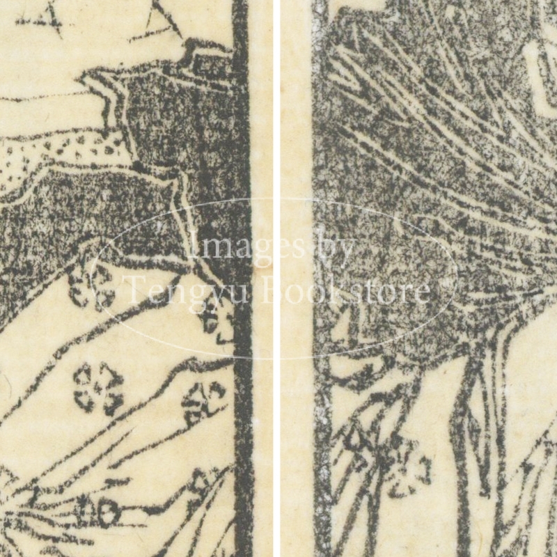 本来は2枚に分けて描かれた作品であるため、色味や図案の整合に若干の不統一があることをご了承ください。