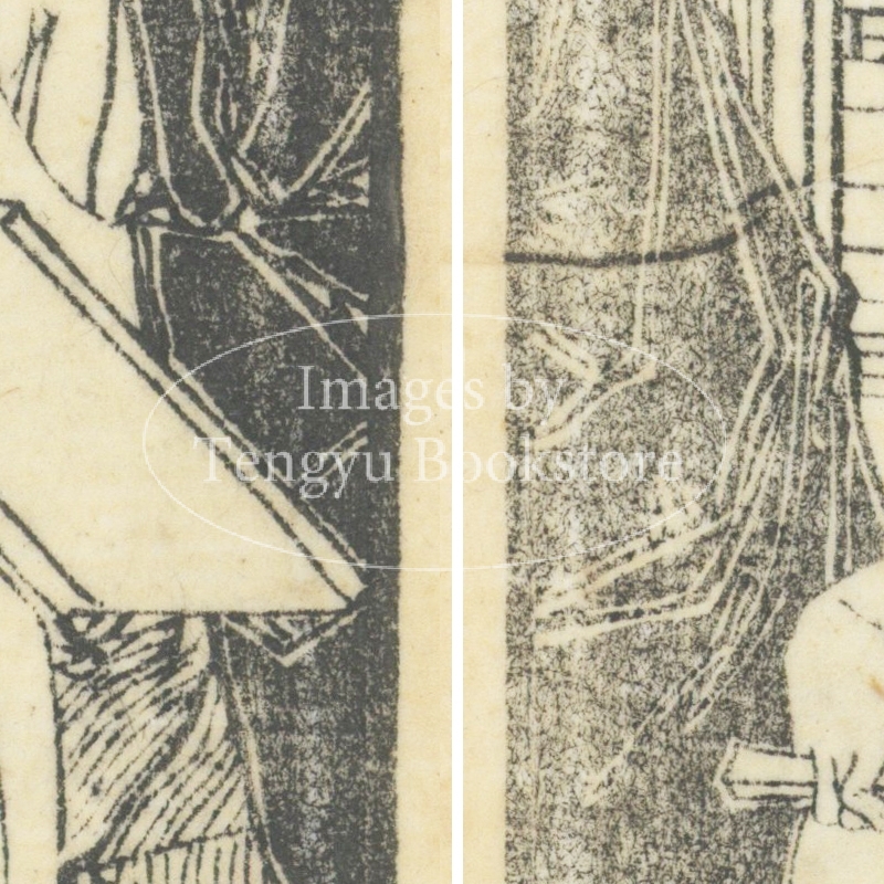 本来は2枚に分けて描かれた作品であるため、色味や図案の整合に若干の不統一があることをご了承ください。