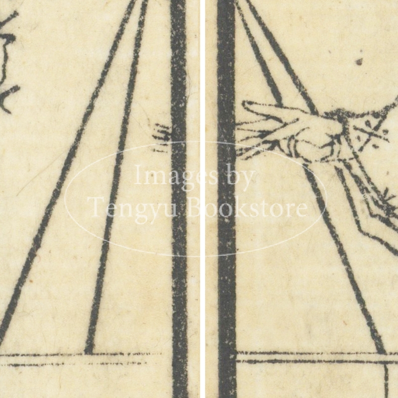 本来は2枚に分けて描かれた作品であるため、色味や図案の整合に若干の不統一があることをご了承ください。