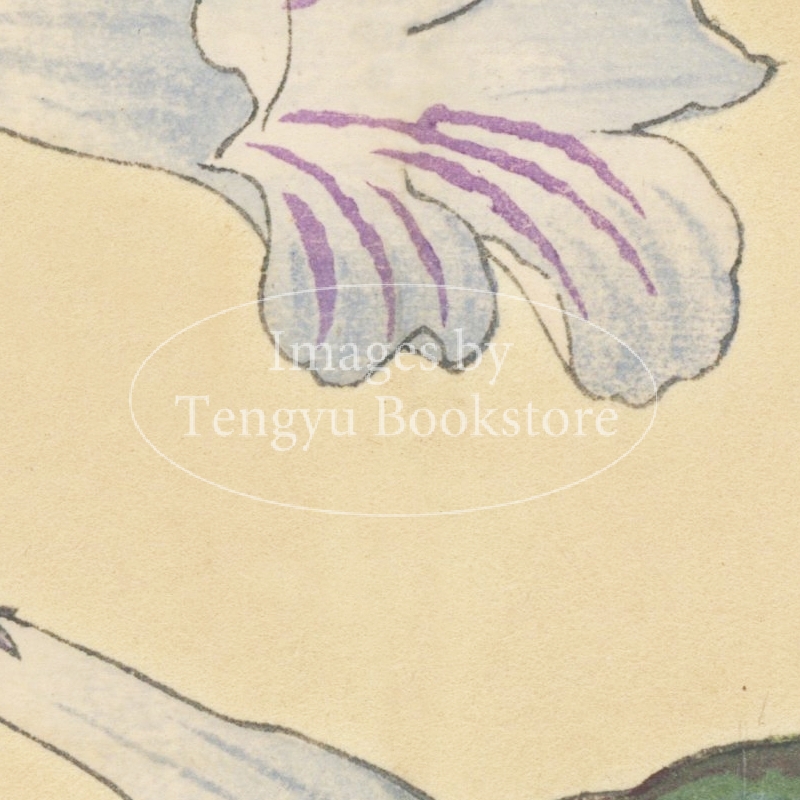 明治大正期の染色図案家 谷上広南(1879‐1928)による木版画集「西洋草花図譜」の1図。当時輸入された海外の草花をおよそ100点取り上げ、色鮮やかな木版画で描いた本作は、日本製のボタニカルアートとして人気の高い作品集です。