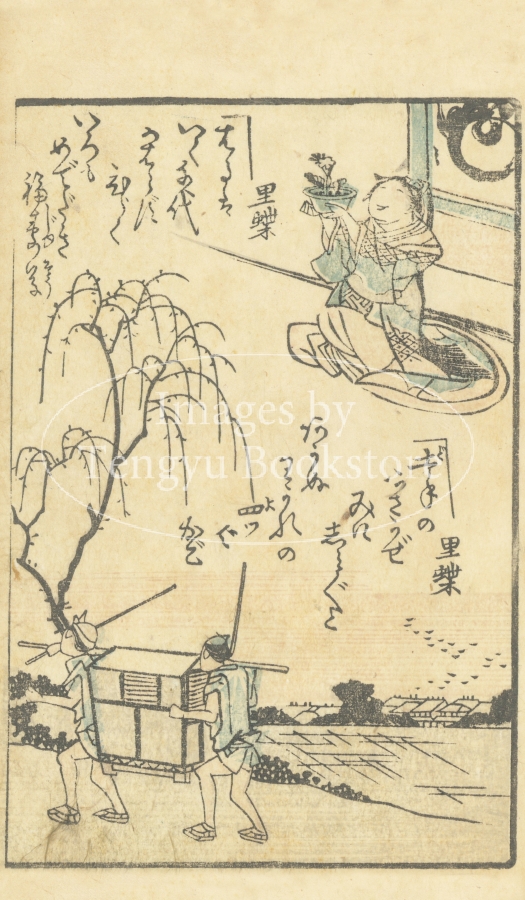 幕末期の浮世絵師 長谷川貞信(1809-1879)が挿絵を手掛けた小唄集「なげぶし図会」からの一枚。江戸時代後期に流行した小唄「投げ節」を集めたもの。