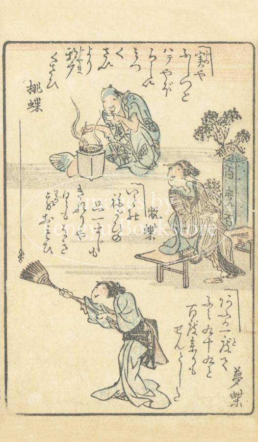 幕末期の浮世絵師 長谷川貞信(1809-1879)が挿絵を手掛けた小唄集「なげぶし図会」からの一枚。江戸時代後期に流行した小唄「投げ節」を集めたもの。