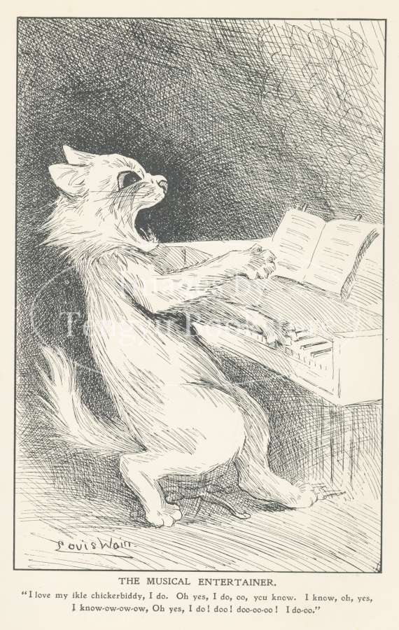 19世紀末~20世紀初期イギリスのイラストレーター、ルイス・ウェイン(1860-1936)の作品集「ルイス・ウェイン年鑑」より。本書は、猫の画家として当時一世を風靡したルイス・ウェインによる短い絵物語を多数収録したもの。