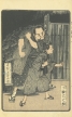 幕末・明治を代表する浮世絵師 月岡芳年(1839-1892)が挿絵を手掛けた草双紙「霜夜鐘十字辻筮(しもよのかねじゅうじのつじうら)」の挿絵。歌舞伎の演目として知られる「霜夜鐘十字辻筮」を描いたもの。