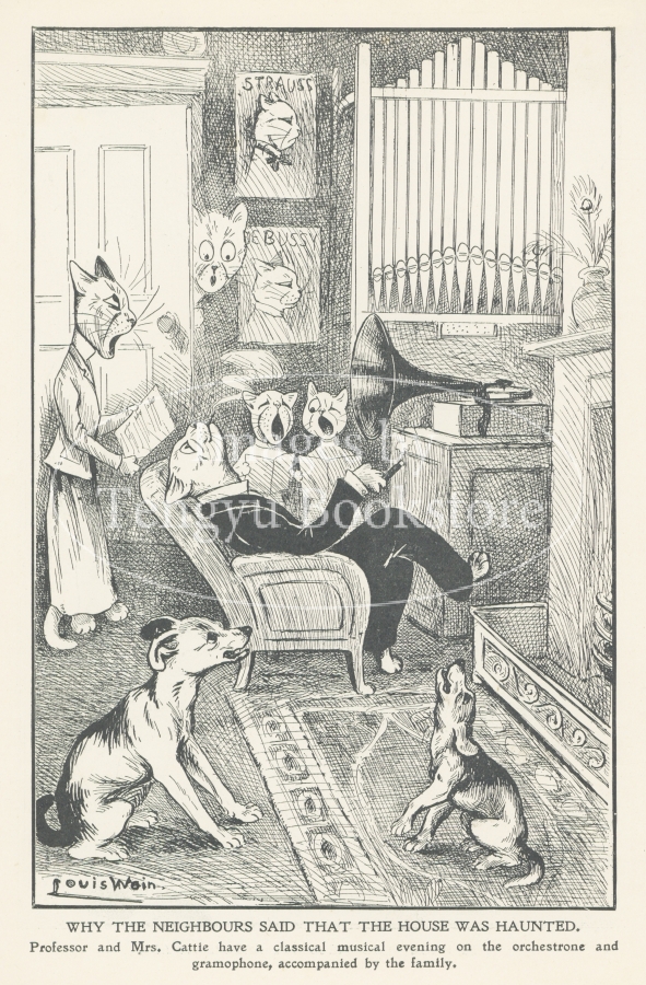 19世紀末~20世紀初期イギリスのイラストレーター、ルイス・ウェイン(1860-1936)の作品集「ルイス・ウェイン年鑑」より。本書は、猫の画家として当時一世を風靡したルイス・ウェインによる短い絵物語を多数収録したもの。