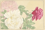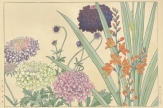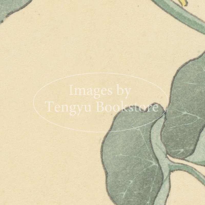 明治大正期の染色図案家 谷上広南(1879‐1928)による木版画集「西洋草花図譜」の1図。当時輸入された海外の草花をおよそ100点取り上げ、色鮮やかな木版画で描いた本作は、日本製のボタニカルアートとして人気の高い作品集です。