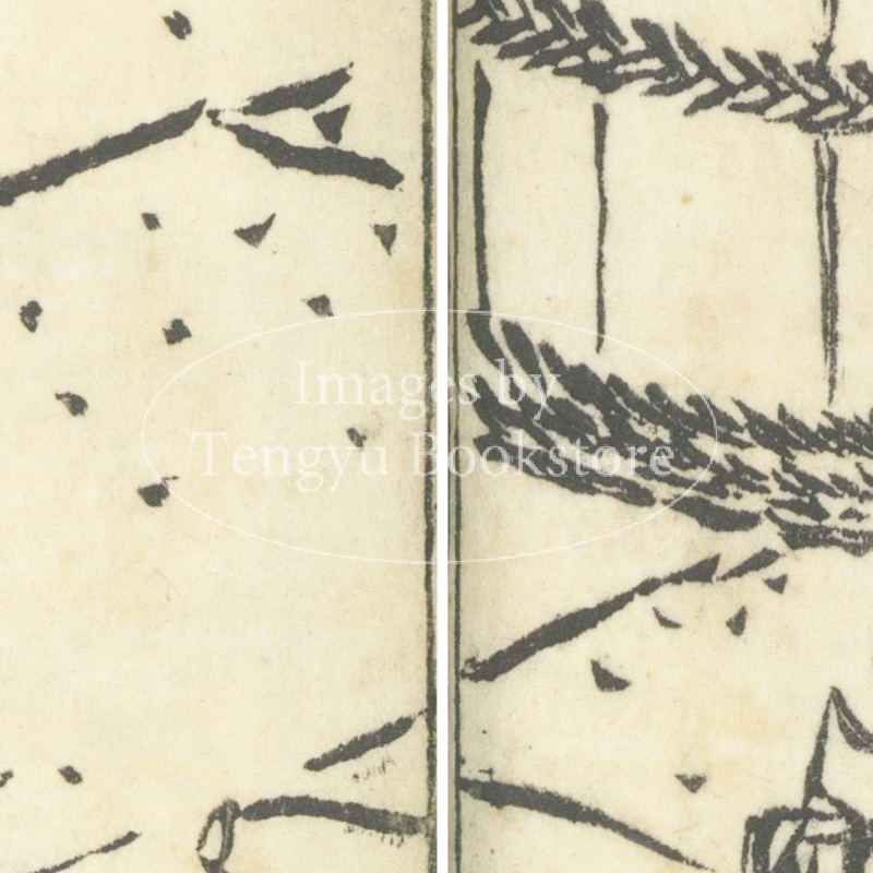 本来は2枚に分けて描かれた作品であるため、色味や図案の整合に若干の不統一があることをご了承ください。