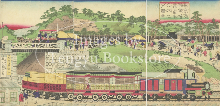 江戸~明治期の浮世絵師 二代目 歌川国輝(1830-1874)が東京の鉄道を描いた名所錦絵。