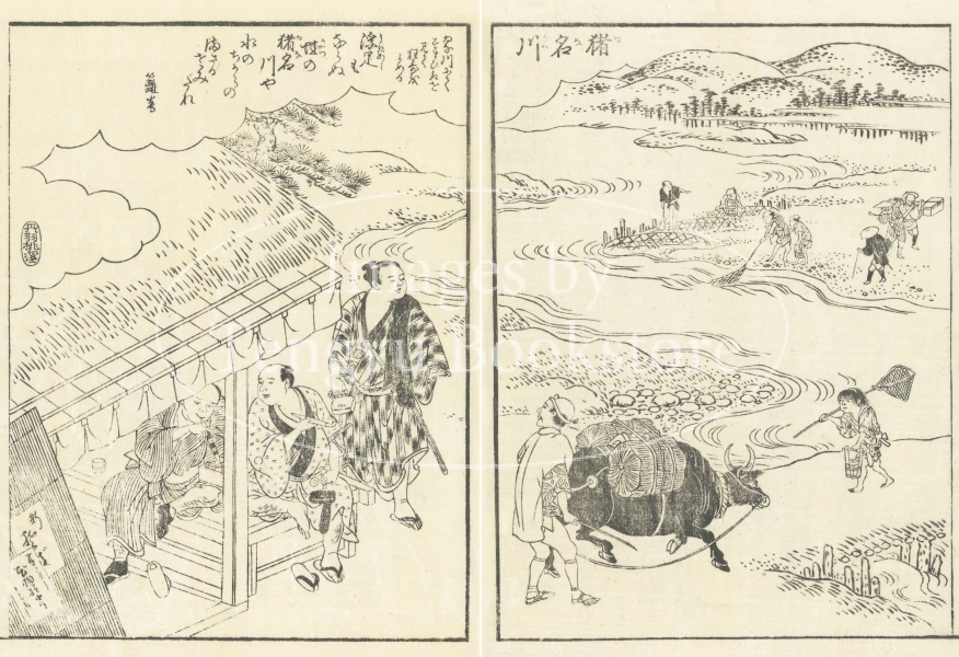 現在の大阪北部近辺にあたる摂津国を紹介した本書は、当時、数多くの名所図会を編纂した京都の文人 秋里籬島(あきさと りとう)によるもの。