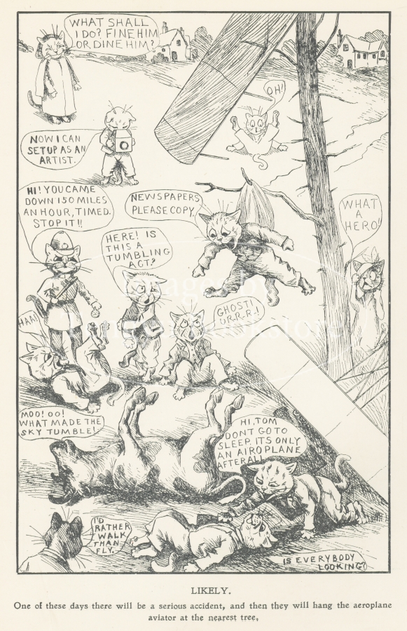 19世紀末~20世紀初期イギリスのイラストレーター、ルイス・ウェイン(1860-1936)の作品集「ルイス・ウェイン年鑑」より。本書は、猫の画家として当時一世を風靡したルイス・ウェインによる短い絵物語を多数収録したもの。