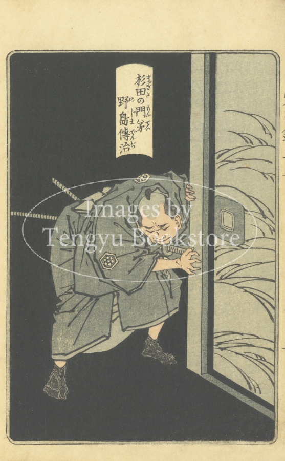 幕末・明治を代表する浮世絵師 月岡芳年(1839-1892)が挿絵を手掛けた草双紙「霜夜鐘十字辻筮(しもよのかねじゅうじのつじうら)」の挿絵。歌舞伎の演目として知られる「霜夜鐘十字辻筮」を描いたもの。