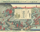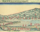 五雲亭貞秀(歌川貞秀)は、鳥の目から見るように上空から景色を見下ろす鳥瞰図を得意とした当時の人気浮世絵師。本シリーズでも、全て絵を繋げることのできる大パノラマを描いています。