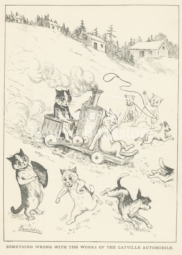 19世紀末~20世紀初期イギリスのイラストレーター、ルイス・ウェイン(1860-1936)の作品集「ルイス・ウェイン年鑑」より。本書は、猫の画家として当時一世を風靡したルイス・ウェインによる短い絵物語を多数収録したもの。