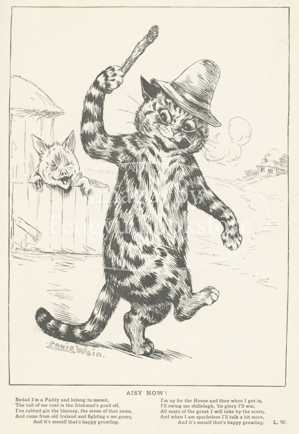 19世紀末~20世紀初期イギリスのイラストレーター、ルイス・ウェイン(1860-1936)の作品集「ルイス・ウェイン年鑑」より。本書は、猫の画家として当時一世を風靡したルイス・ウェインによる短い絵物語を多数収録したもの。