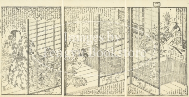 江戸時代後期の草双紙「明鴉墨画廼裲襠 (あけがらすすみえのうちかけ)」からの一枚。