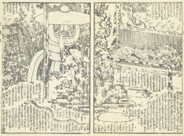江戸時代後期の草双紙「明鴉墨画廼裲襠 (あけがらすすみえのうちかけ)」からの一枚。