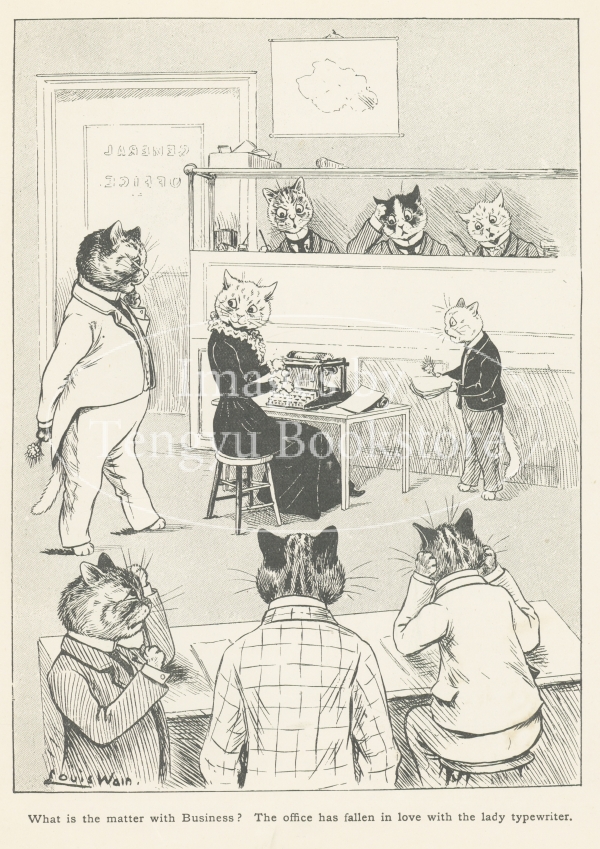 19世紀末~20世紀初期イギリスのイラストレーター、ルイス・ウェイン(1860-1936)の作品集「ルイス・ウェイン年鑑」より。本書は、猫の画家として当時一世を風靡したルイス・ウェインによる短い絵物語を多数収録したもの。