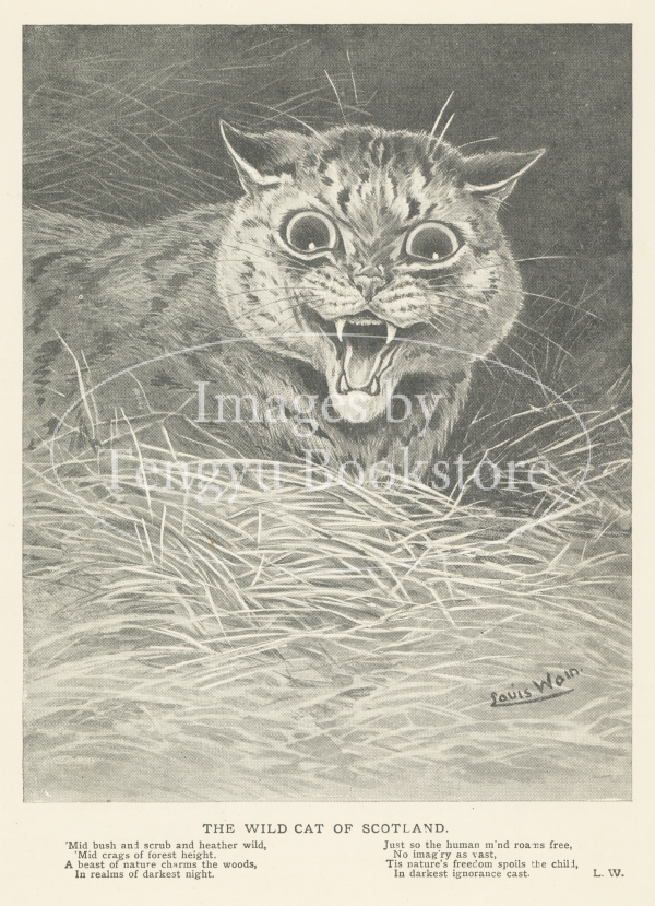 19世紀末~20世紀初期イギリスのイラストレーター、ルイス・ウェイン(1860-1936)の作品集「ルイス・ウェイン年鑑」より。本書は、猫の画家として当時一世を風靡したルイス・ウェインによる短い絵物語を多数収録したもの。