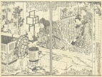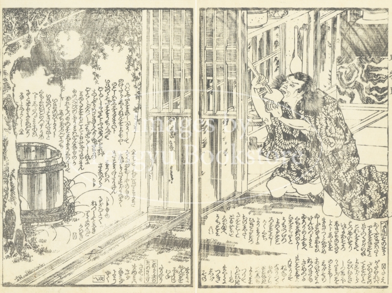江戸時代後期の草双紙「明鴉墨画廼裲襠 (あけがらすすみえのうちかけ)」からの一枚。