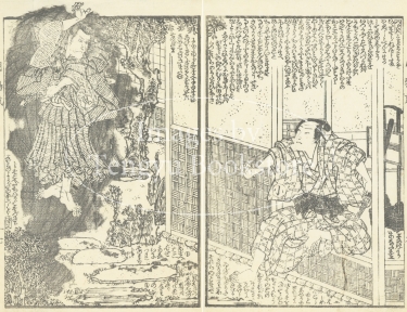 江戸時代後期の草双紙「明鴉墨画廼裲襠 (あけがらすすみえのうちかけ)」からの一枚。