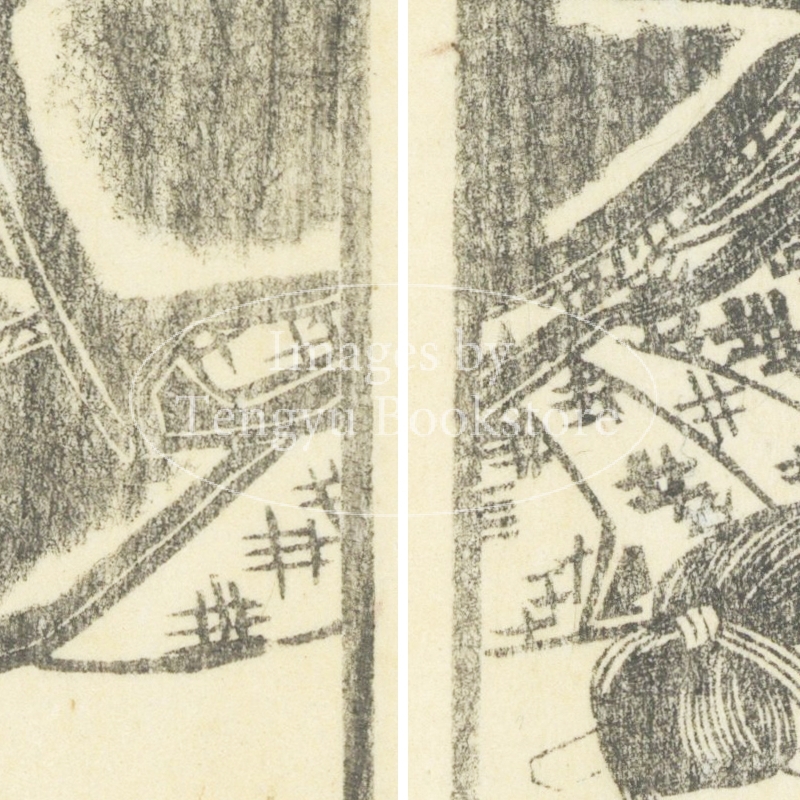 本来は2枚に分けて描かれた作品であるため、色味や図案の整合に若干の不統一があることをご了承ください。