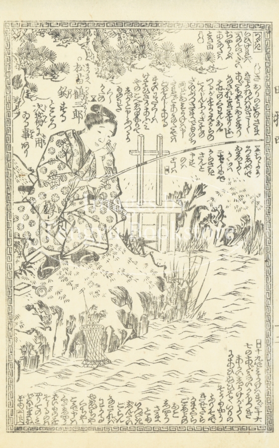 江戸時代後期の草双紙「明鴉墨画廼裲襠 (あけがらすすみえのうちかけ)」からの一枚。