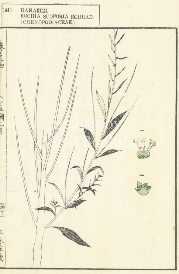 江戸時代後期の本草学者 飯沼慾斎(1783~1865)による植物図鑑「草木図説」中の1図。およそ1000点に上る植物を取り上げ、正確な図とともに解説した本書は、リンネの分類法を取り入れた日本で最初の近代的植物図鑑。本図は明治時代に刊行された増訂版のもの。