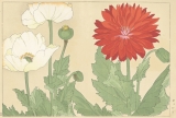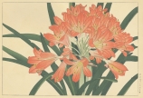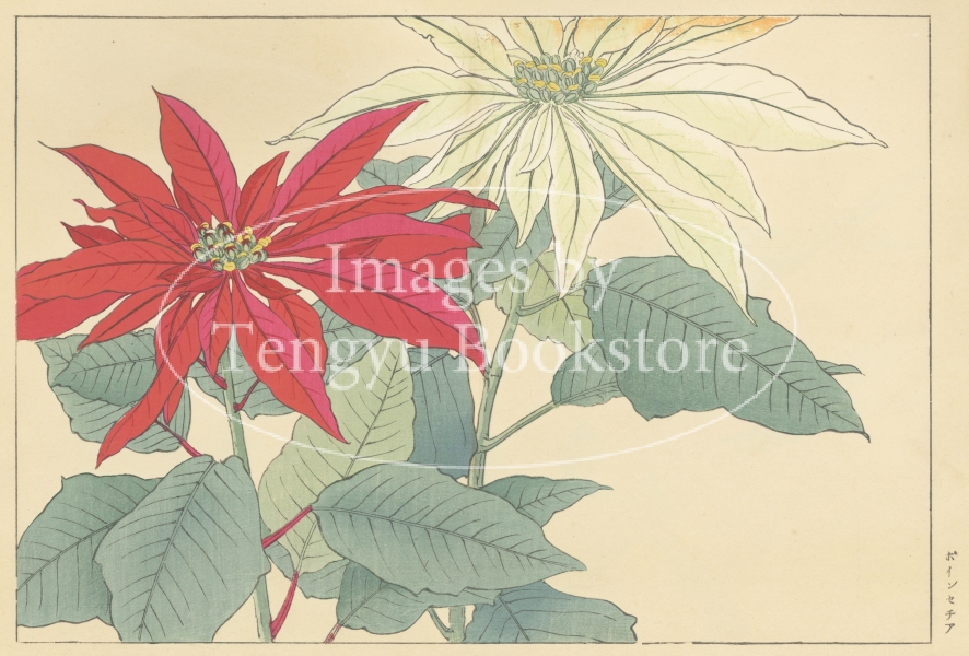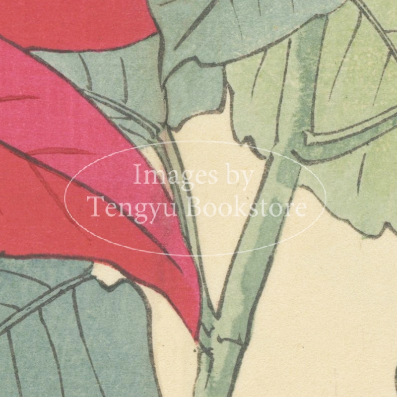 明治大正期の染色図案家 谷上広南(1879‐1928)による木版画集「西洋草花図譜」の1図。当時輸入された海外の草花をおよそ100点取り上げ、色鮮やかな木版画で描いた本作は、日本製のボタニカルアートとして人気の高い作品集です。