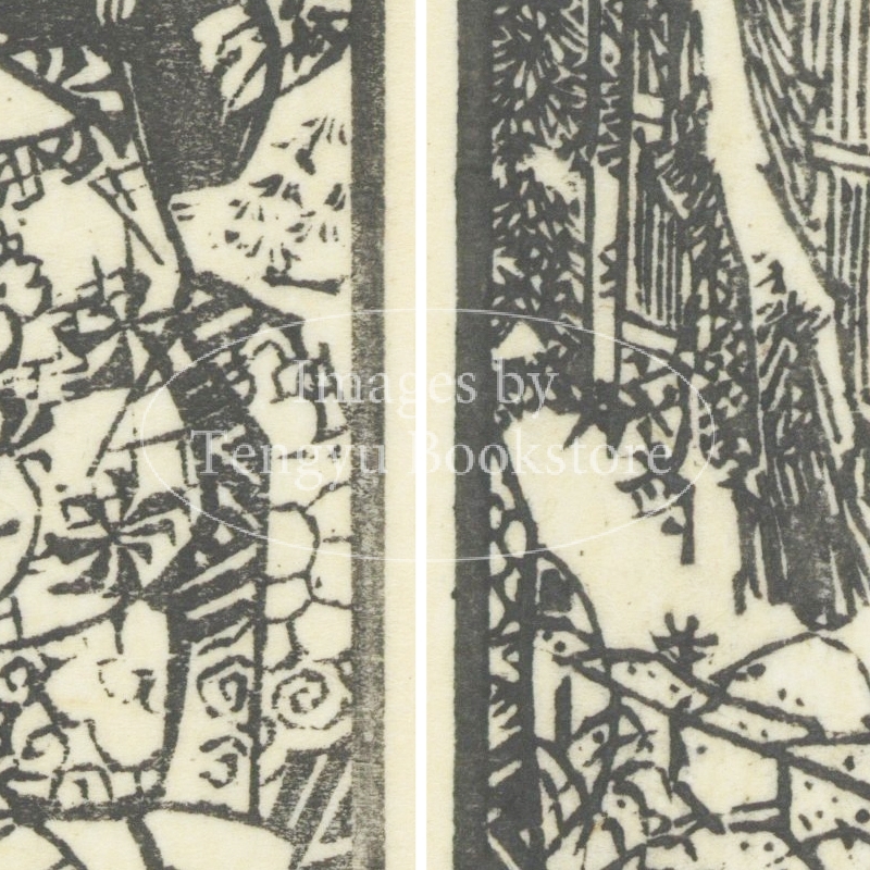 本来は2枚に分けて描かれた作品であるため、色味や図案の整合に若干の不統一があることをご了承ください。