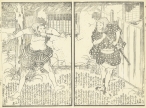 江戸時代後期の草双紙「明鴉墨画廼裲襠 (あけがらすすみえのうちかけ)」からの一枚。
