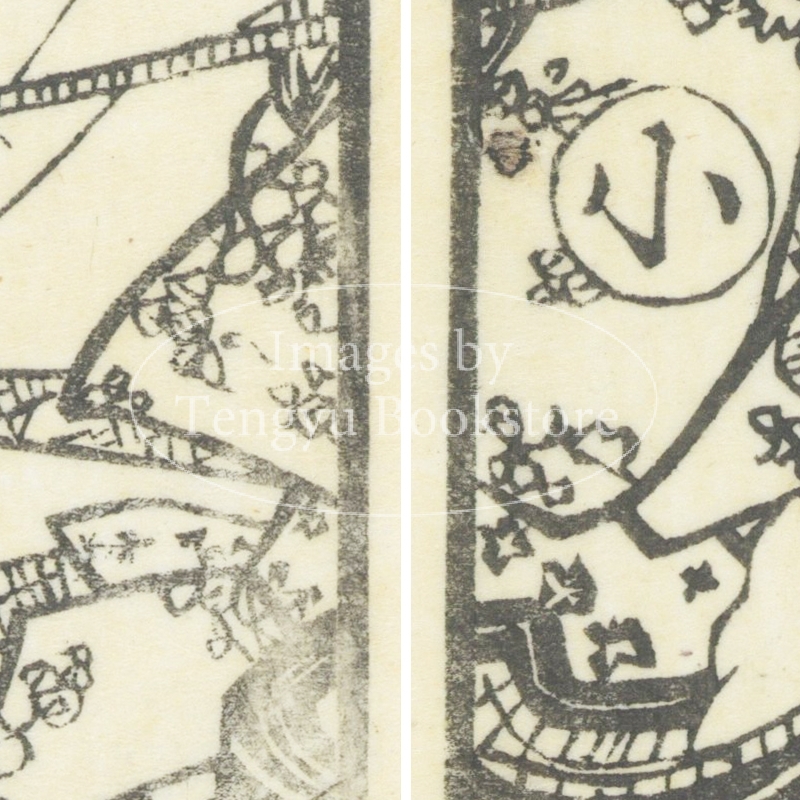 本来は2枚に分けて描かれた作品であるため、色味や図案の整合に若干の不統一があることをご了承ください。
