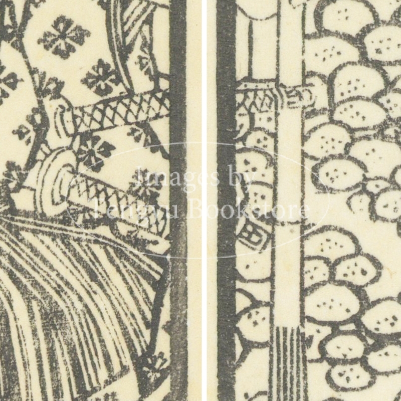 本来は2枚に分けて描かれた作品であるため、色味や図案の整合に若干の不統一があることをご了承ください。