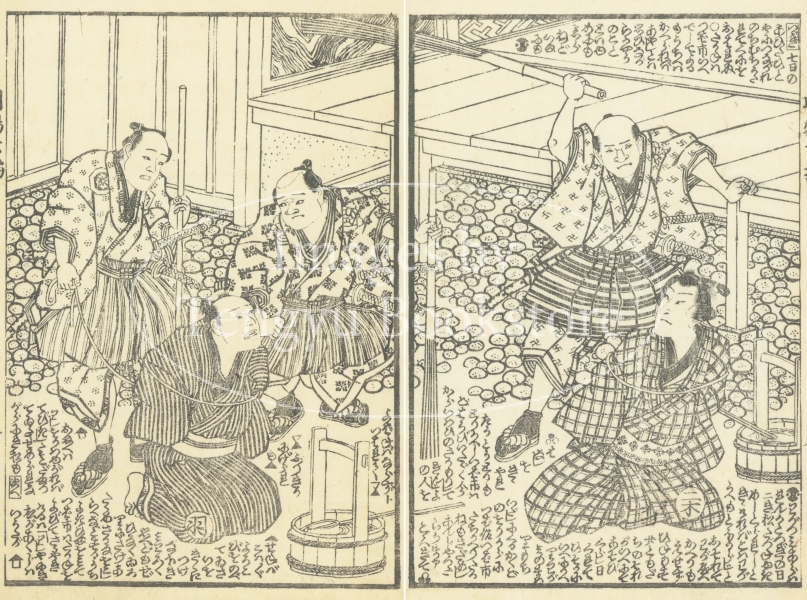 江戸時代後期の草双紙「明鴉墨画廼裲襠 (あけがらすすみえのうちかけ)」からの一枚。
