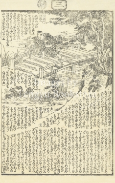 江戸時代後期の草双紙「明鴉墨画廼裲襠 (あけがらすすみえのうちかけ)」からの一枚。