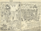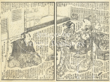 江戸時代後期の草双紙「明鴉墨画廼裲襠 (あけがらすすみえのうちかけ)」からの一枚。