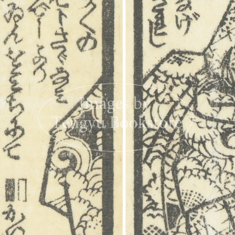 本来は2枚に分けて描かれた作品であるため、色味や図案の整合に若干の不統一があることをご了承ください。